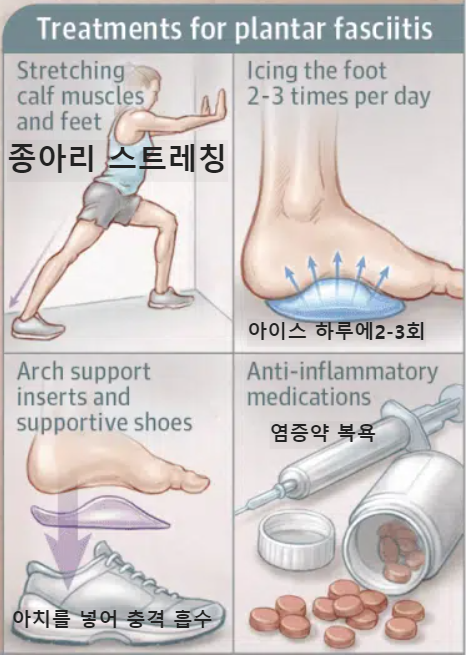 다행히, 대부분의 족저 근막염 환자는 보존적 치료로 회복 가능합니다. 치료 방법은 다음과 같습니다.